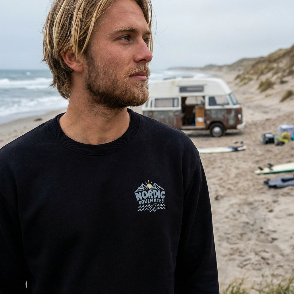 Denn Nordic Soulmates ist mehr als ein Label, es ist das Gefühl von Salz auf der Haut, der erste Sprung ins kalte Wasser und der Duft von Kiefernwald und Salz nach einem Surftag. Wir machen Kleidung, die diese Momente festhält, und die Natur schützt, die sie uns schenkt.