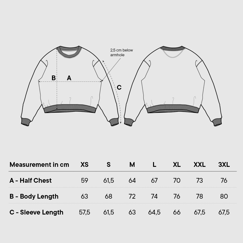 Rückgaben zu vermeiden, frag uns gerne vor deiner Bestellung nach Größenberatung. Nutze außerdem unsere Größentabellen, diese findest du bei jedem Produkt als Bild. So bleibt alles im Fluss, für dich und den Planeten.