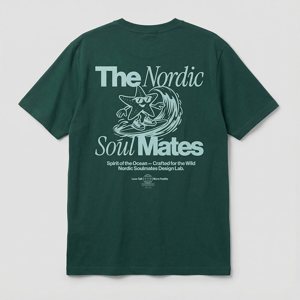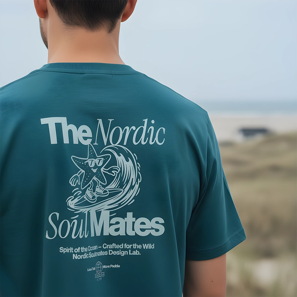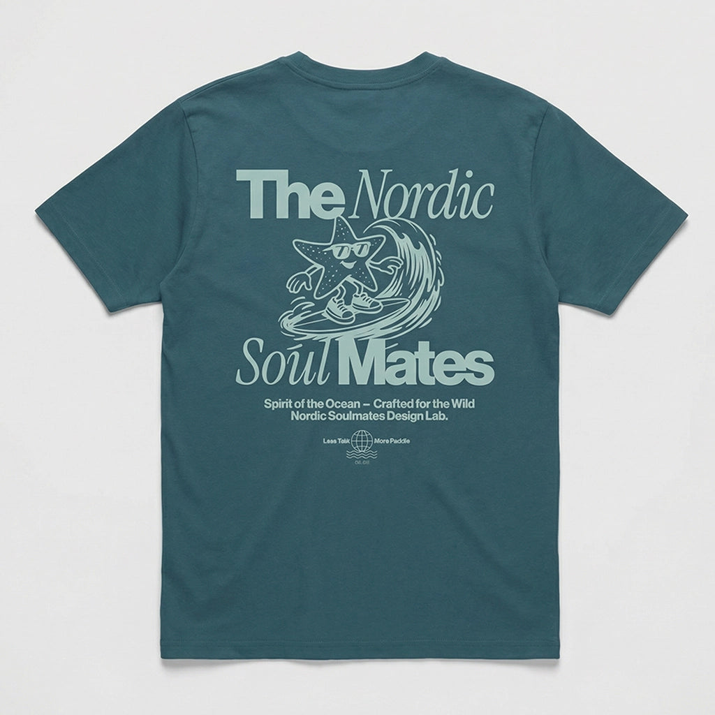 Surf’s up für die Seele! Unser T-Shirt mit dem entspannten, surfenden Seestern und dem Spruch „The Nordic Soul Mates“ ist ein Statement für alle, die das Leben leicht nehmen mit einer Prise nordischem Charme und jeder Menge guter Laune. Perfekt für Strandtage, gemütliche Abende oder einfach als Erinnerung daran, dass auch Seesterne manchmal die Wellen reiten