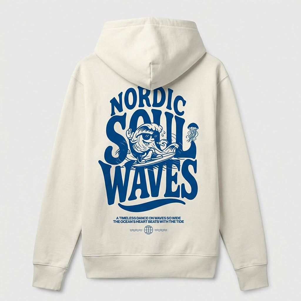 Nachhaltig gefertigt für dein nächstes SUP-Abenteuer oder die perfekte Surf-Session. Atme den salzigen Wind ein und bleib verbunden mit dem Element, das uns alle verbindet. Unser Hoodie mit blauen Backprint und kleinem Frontprint ist eine Liebeserklärung an das Wasser. Ob beim Paddeln, Surfen oder einfach am Strand. Das Wassersport-inspirierte Motiv macht ihn zum unverzichtbaren Stück für alle, die das Meer im Herzen tragen.